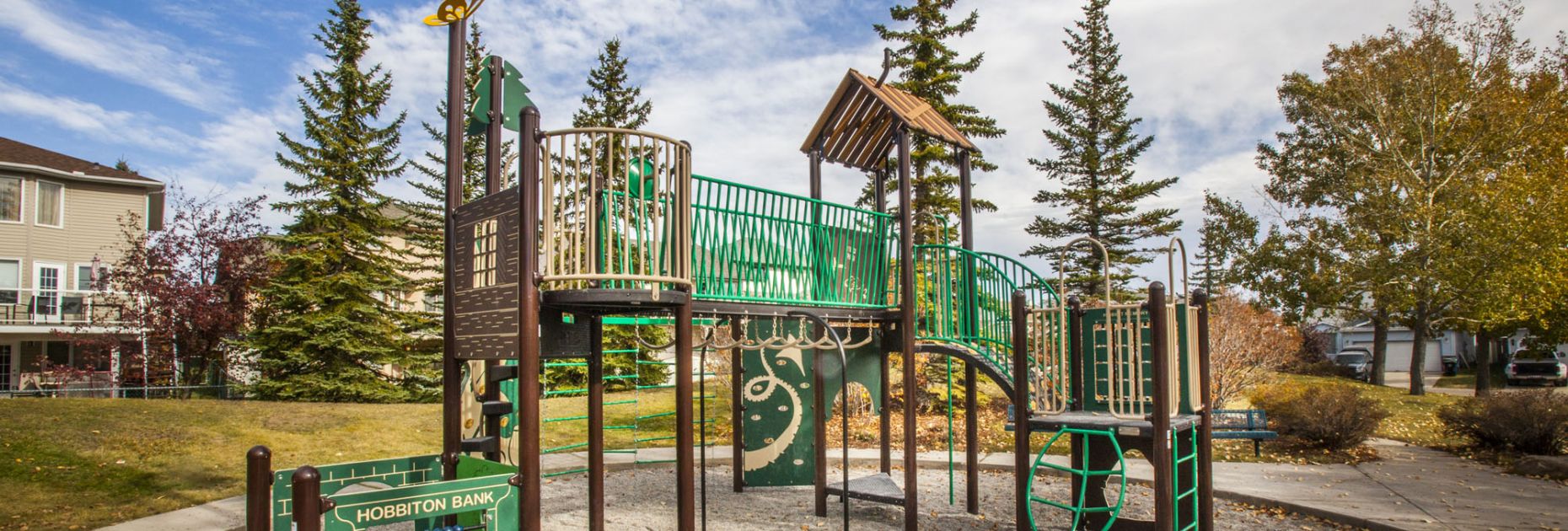 The centrepiece of this compact design is the Smaug the Dragon Climbing Wall. This impressive make-believe dragon supplies scaling, clambering and climbing action for intrepid little adventurers. The Hobbit Memory Game, the Hobbiton Bank and Gollum’s Cave help complete this hobbit themed playground. These and more delightful details add to the fantasy and fun. The end result is fun-filled playground for all ages. We love how a unique idea brought to us by this customer helped create a one-of-a-kind neighbourhood playground!
