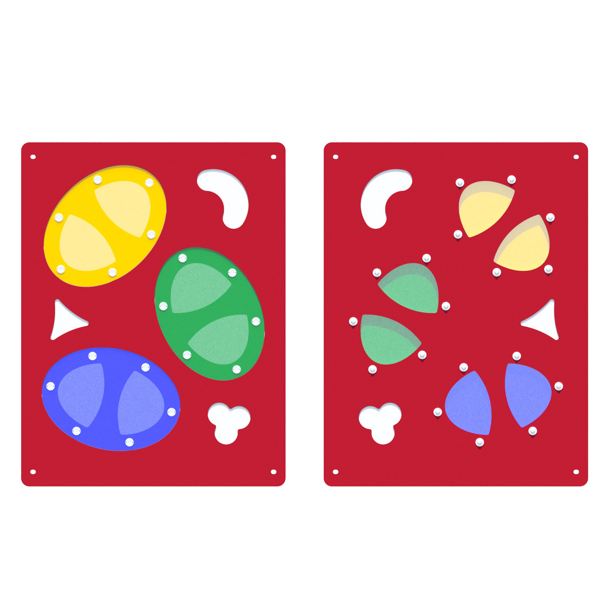 The Colourplay playground panel engages the visual senses through light and colour. Translucent elements invite children to identify hues, explore the interplay of colour and light, how colours change and even play a game of peek-a-boo.