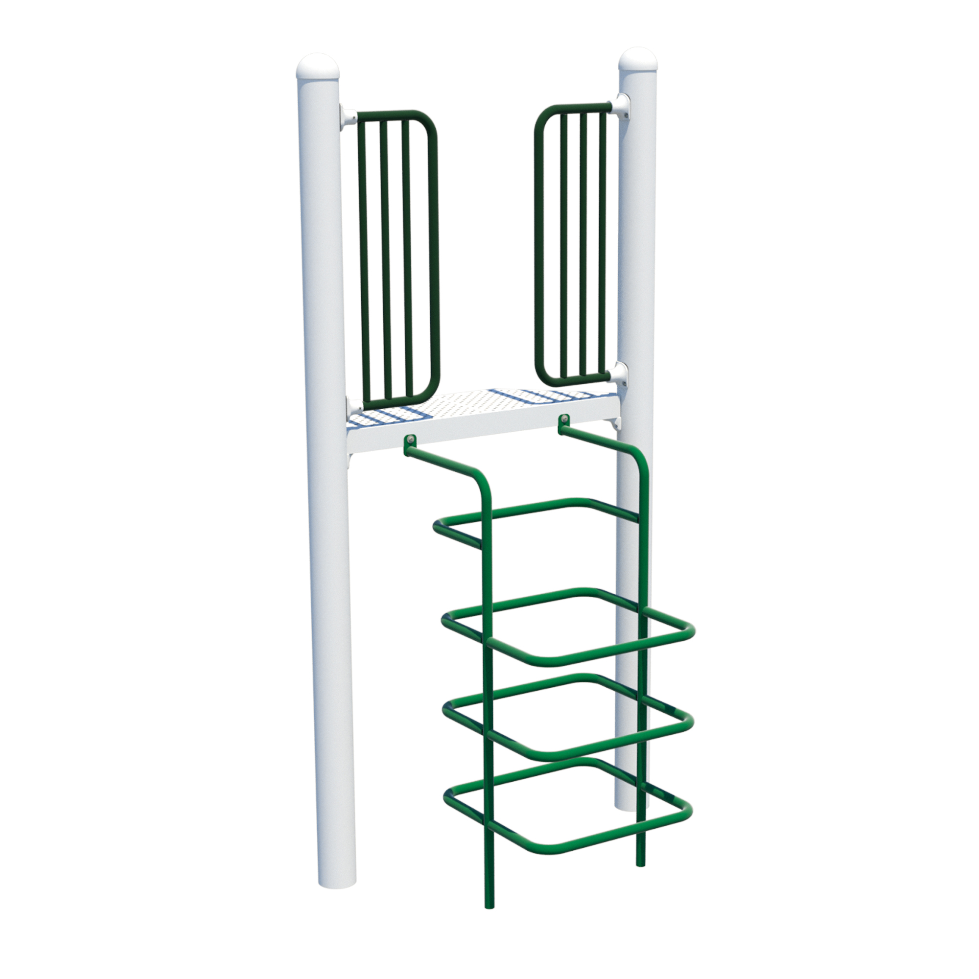 The Cube Climb playground climber features fixed steel rungs arranged in stacked square shapes. Kids can make their way up the inside or the outside as they clamber to the top.