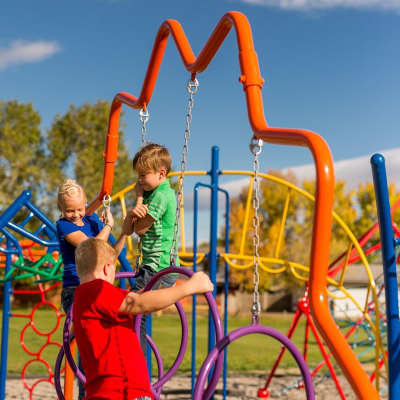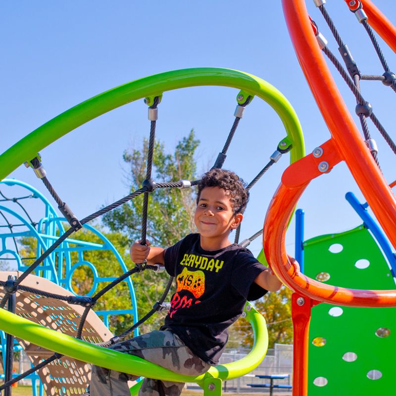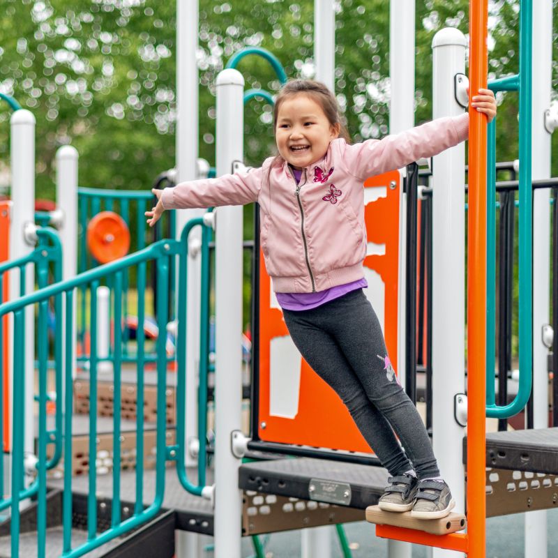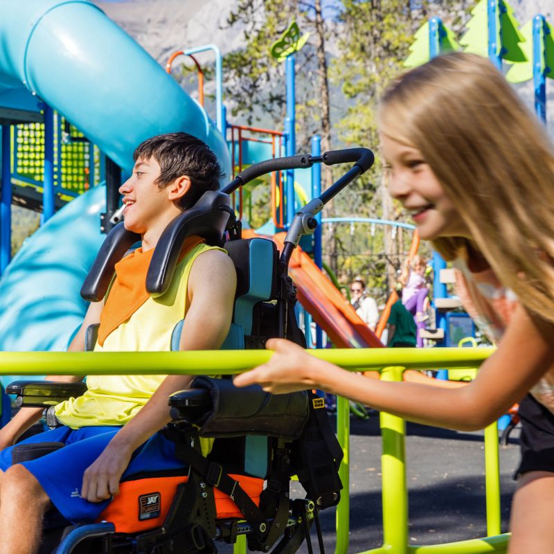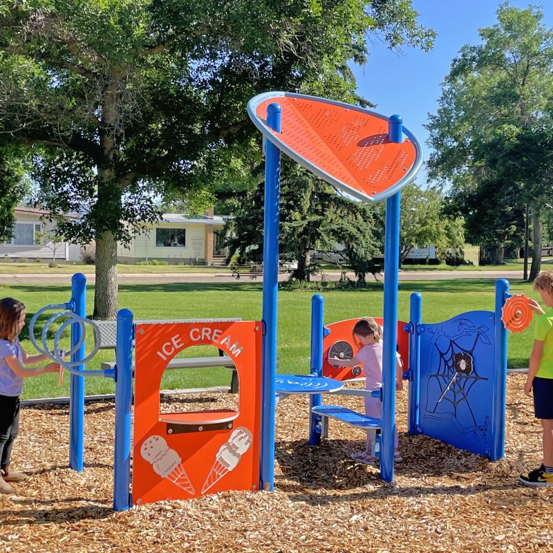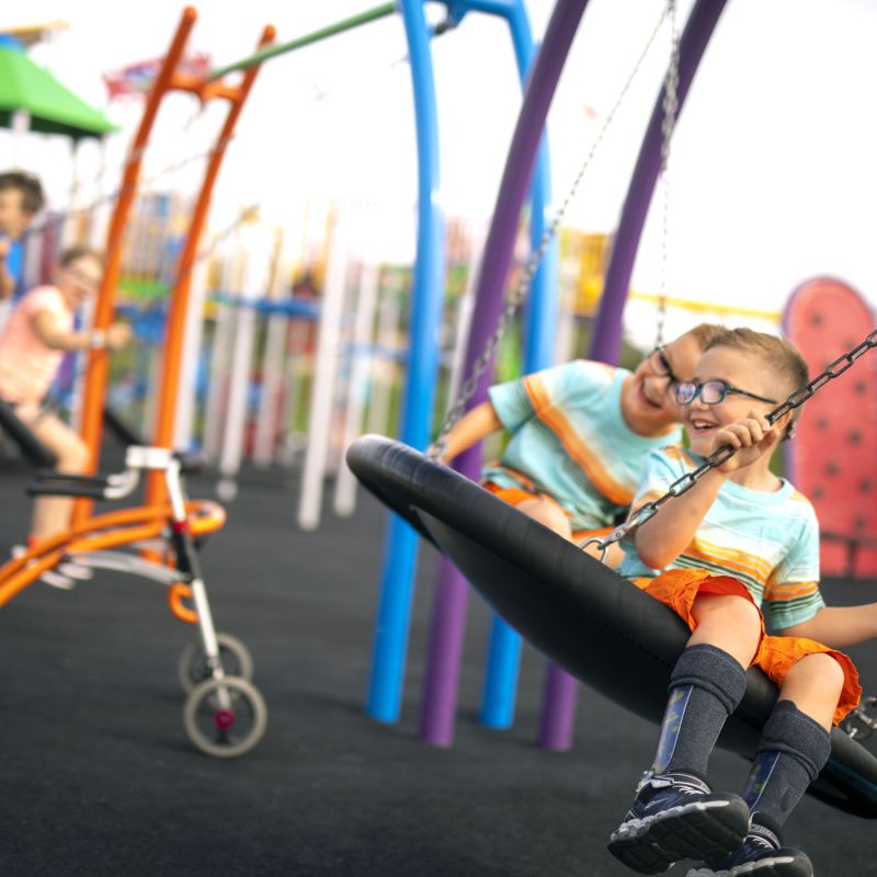 The Everybody Plays accessible playground is a Viking ship, a train and a treehouse all in one. Best of all, it’s wheelchair playable right to the top! This multi-themed playground provides active, inclusive and imaginative play experiences for all ages and abilities so that everybody can play.