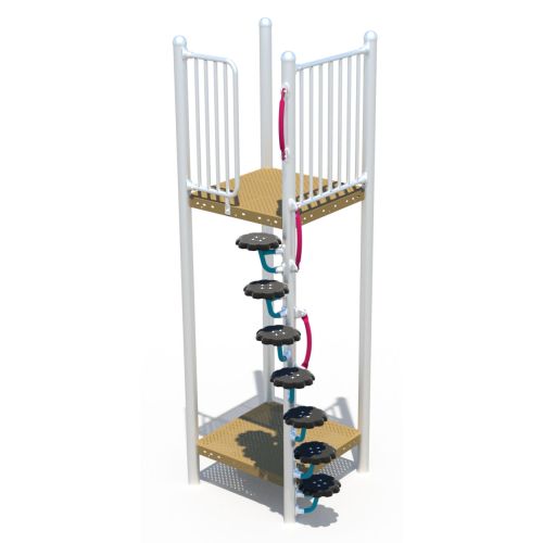 The Funky Stair playground climber is a stair-shaped, rung-style climber creating a fun way to climb up onto the playground.