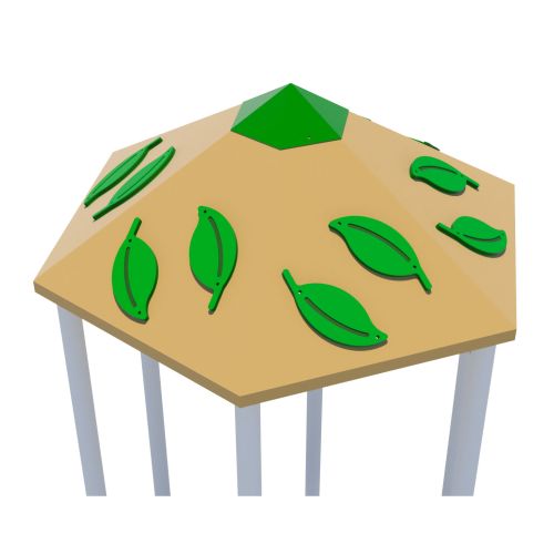 Provide shade and flair to your playground with the Hex Roof playground component. This hexagonal roof is available with various designs (such as leaves or maples leaves). Also available with custom imaging.