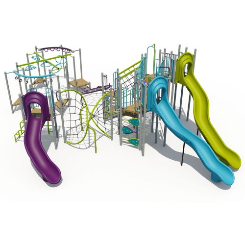 The Jackson playground structure delivers wide-ranging climbing activities for a diverse age group in a compact design. Dual net climbers add to the challenge and fun. An ideal choice for both schools and community parks.