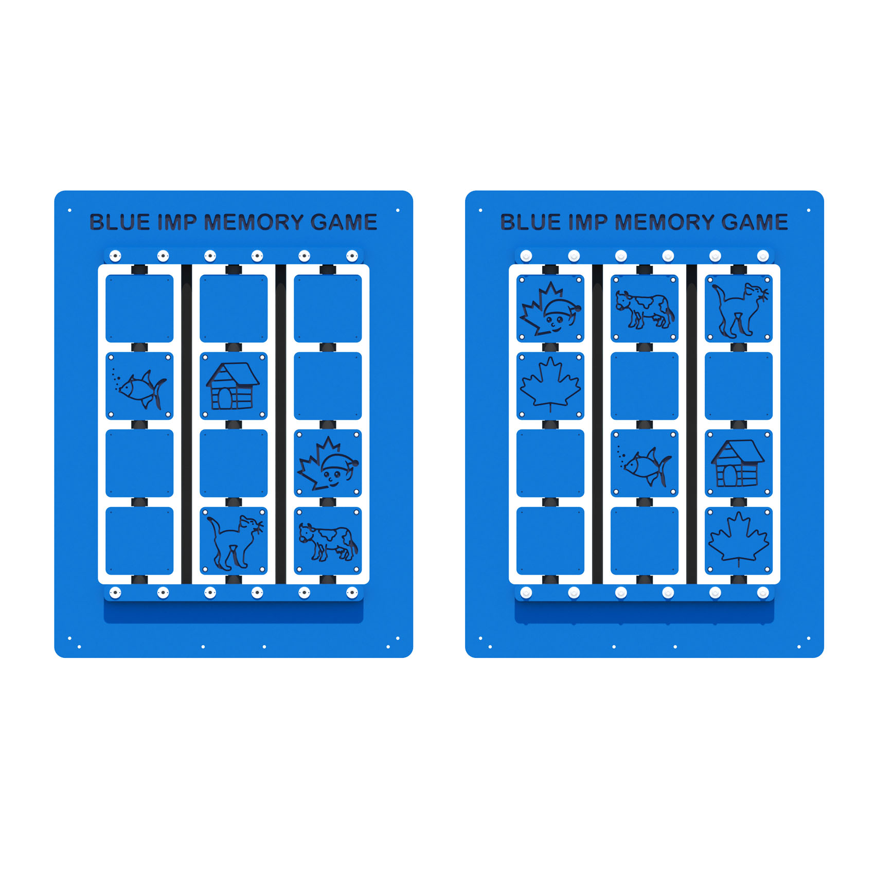 Kids can practice image recall, turn-taking, and cooperation with the Memory Game playground panel. This engaging panel features square tiles that children flip to reveal hidden images, challenging them to find matching pairs just like in the classic Memory Board Game. The activity encourages focus, cognitive development and social interaction, while providing a quieter, calming option for all ages.