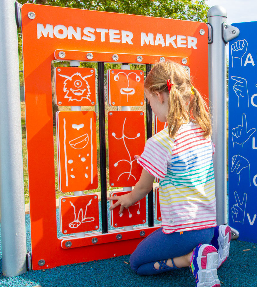 Kids will have fun turning the tiles and choosing the head, body and legs to create their very own monster with the Monster Maker playground panel. Available in standard or Play-O formats.