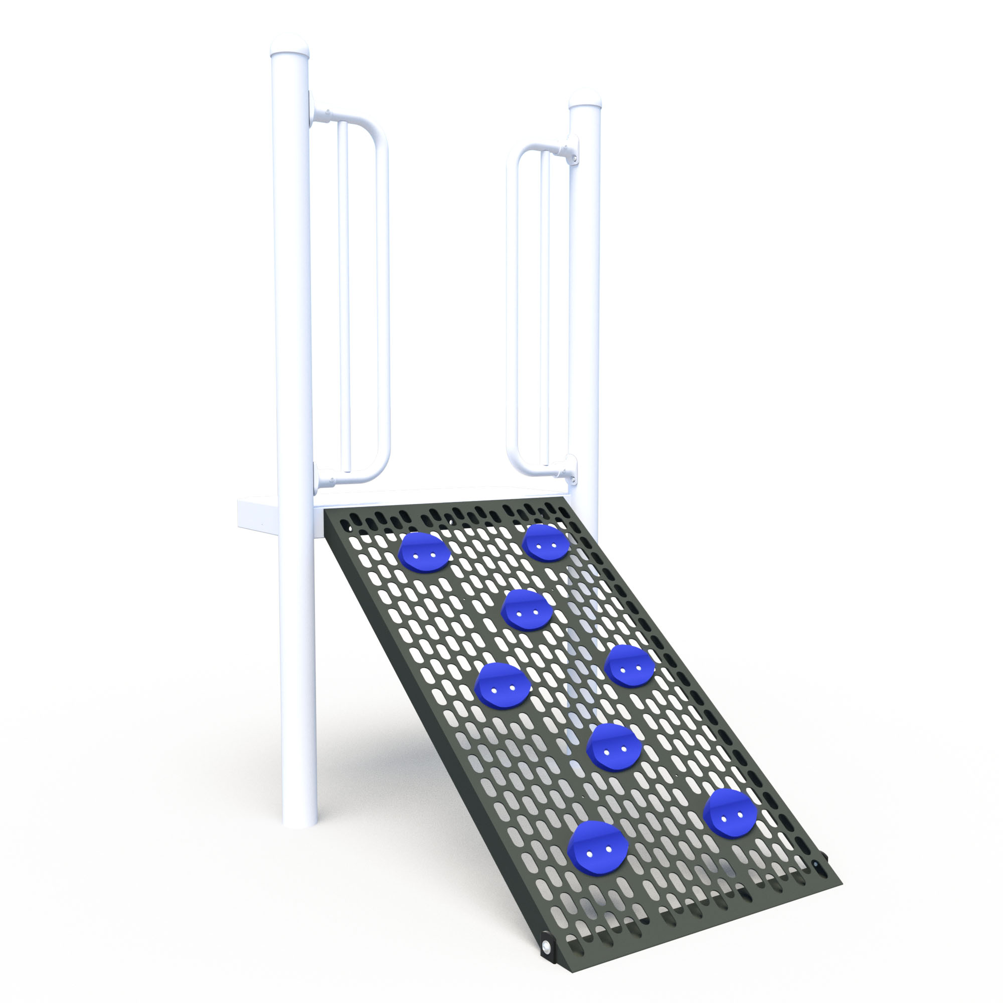 The Pebble Path playground climber is a smaller, gently angled climber designed especially for younger users. Prominent hand and footholds guide kids as they make their way up to lower-level platforms,