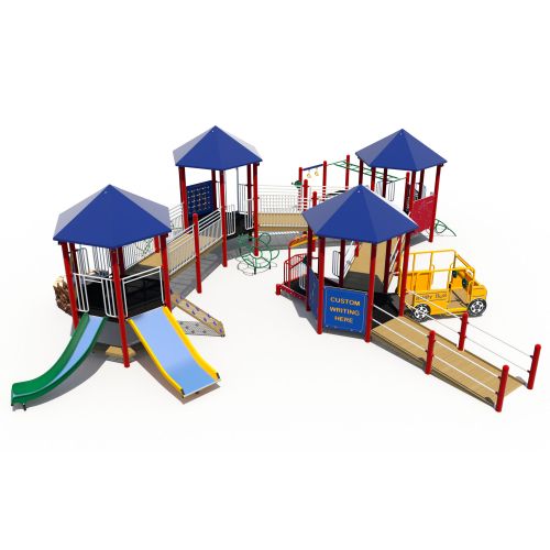 Design services are included! Playground designs can be re-configured to meet your preferences and needs for space, layout, components, slide type (plastic or steel), colour scheme, etc. Designs shown are subject to change without notice.