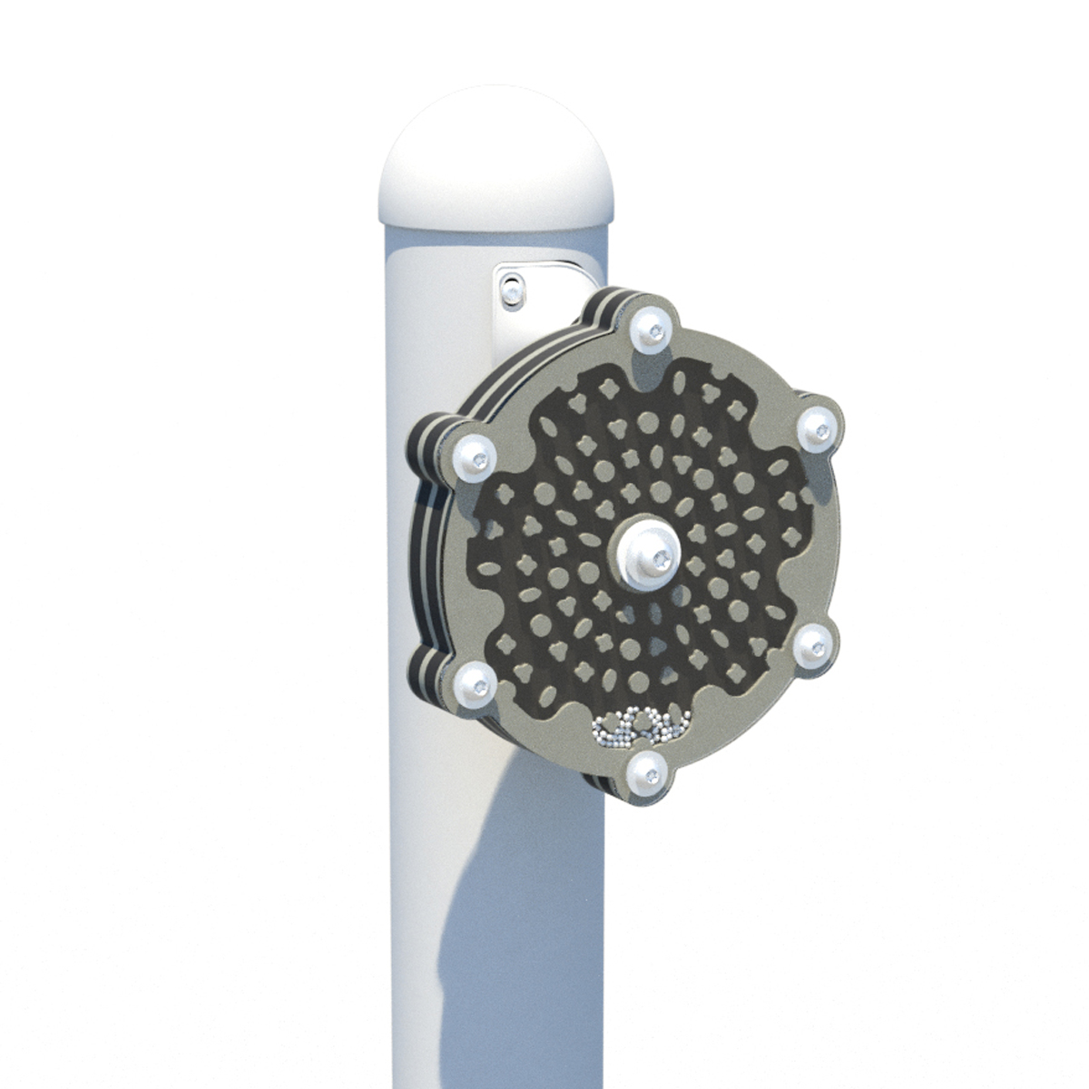 Bring visual and auditory fun to the playground with the Rainmaker sensory play component. Children of all ages and abilities will love experimenting with cause and effect as they spin the Rainmaker at different speeds, this way and that, watching dozens of tiny steel balls cascade through the maze to create a mesmerizing rain-like sound.