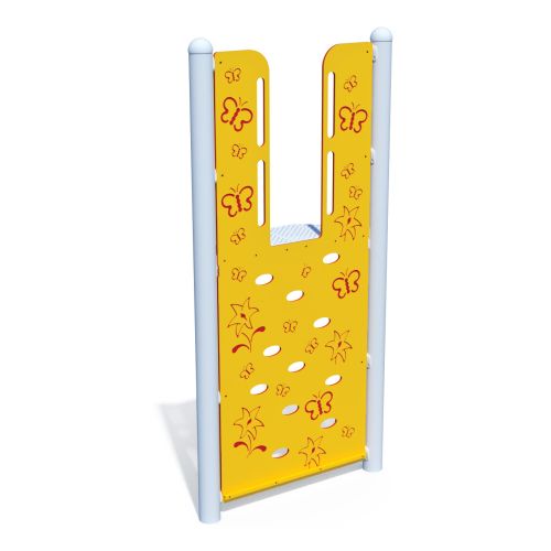 The Saucer Coil playground climber features pod hops arranged around a central post for a unique climbing and balancing experience. Available in various heights.