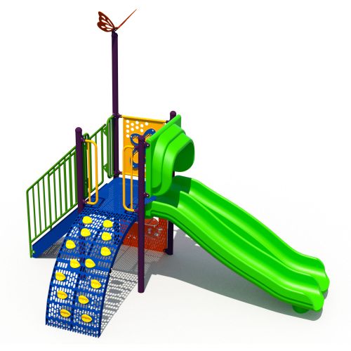 The Skyful tower playground merges the thrill of height with the benefits of accessible design. This unique design features multiple levels of climbing and sliding fun. Low-profile, easy-access stairs all the way to the top are incorporated to create broader access to the fun for diverse ages and abilities.