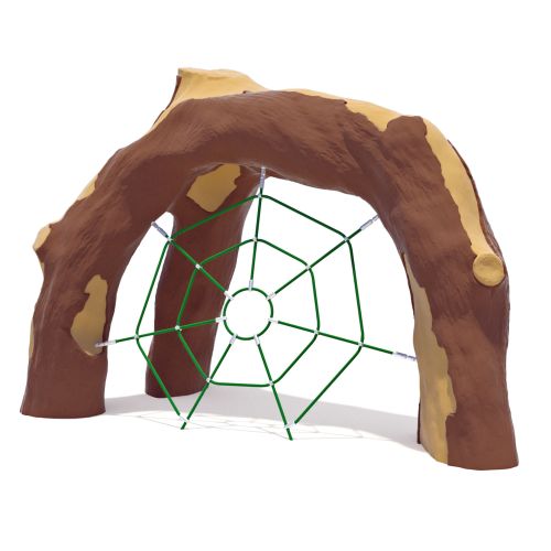 The Spider Web Climber with Log Stumps allows kids to scale across the web like a giant insect. Kids can crawl across the top or dangle from the bottom as they explore this playground climber.