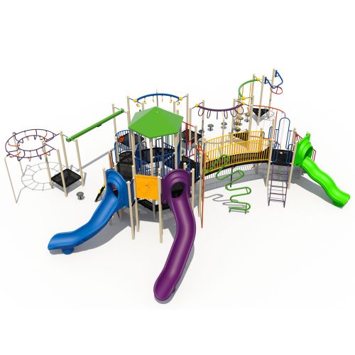 Design services are included! Playground designs can be re-configured to meet your preferences and needs for space, layout, components, slide type (plastic or steel), colour scheme, etc. Designs shown are subject to change without notice.