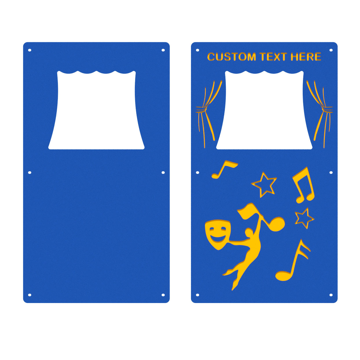 The Theatre Panel playground component sets the stage for imaginative play and impromptu performances. With a opening that serves as the stage and theatre-themed graphics, children can act out stories and engage in cooperative, creative fun.