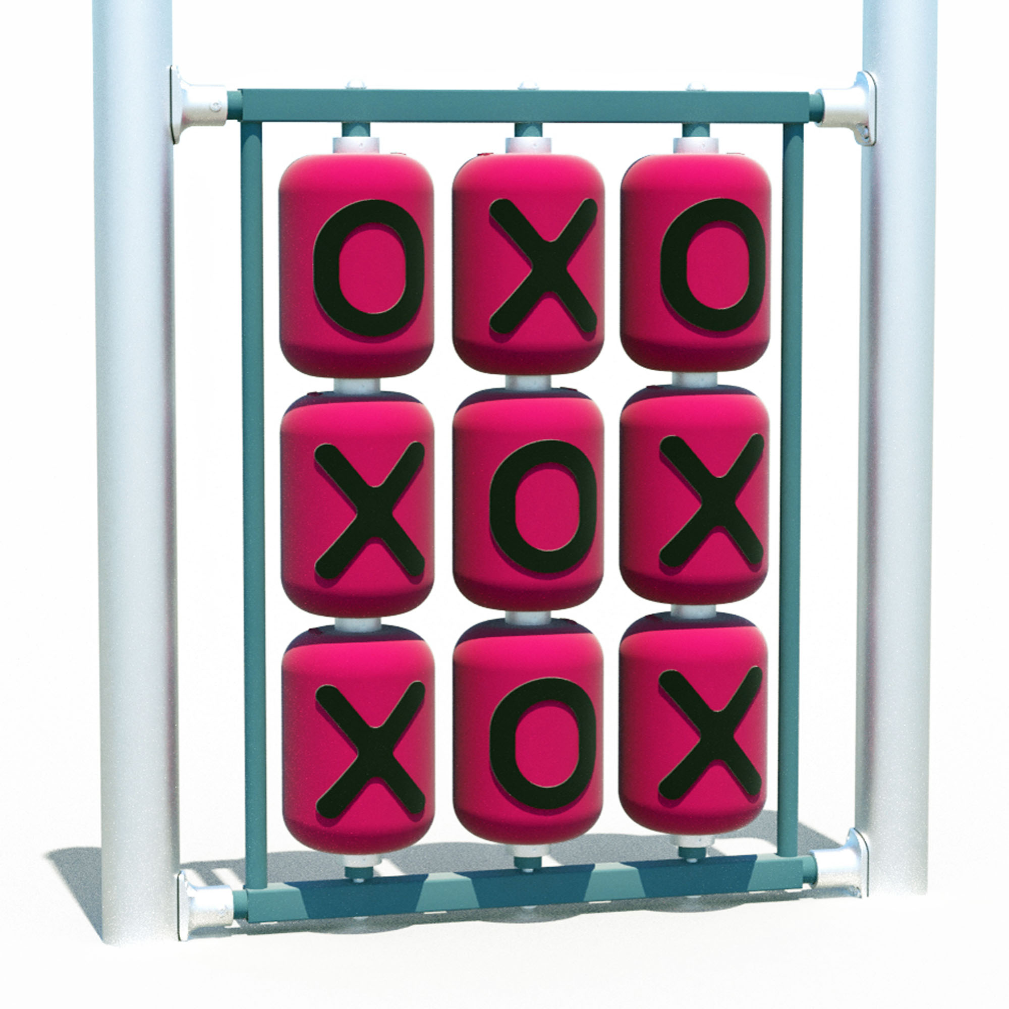 Constructed of highly durable powder-coated steel and aluminum, the Aluminum Tic-Tac-Toe panel is a timeless playground favorite that combines fun with learning. Children can turn the cast aluminum drums to play the classic game, practicing strategy and pattern recognition while engaging in a calming, tactile activity. Its rugged design ensures long-lasting performance in any playground setting, while the interactive format encourages social interaction, turn-taking and cooperative play.
