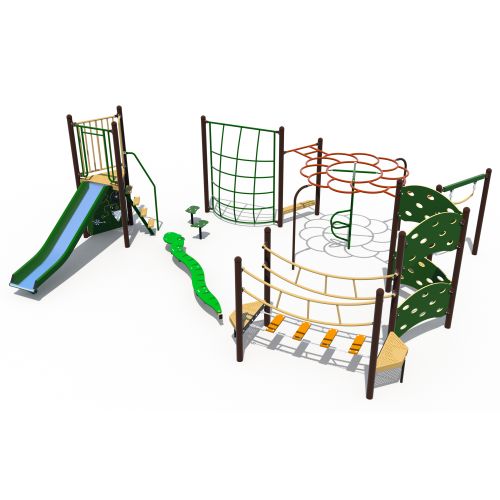 The Tundra Trek agility circuit playground provides exciting climbing and clambering opportunities for adventure-minded users. This challenging circuit-style playground design is ideal for mid to upper elementary ages.