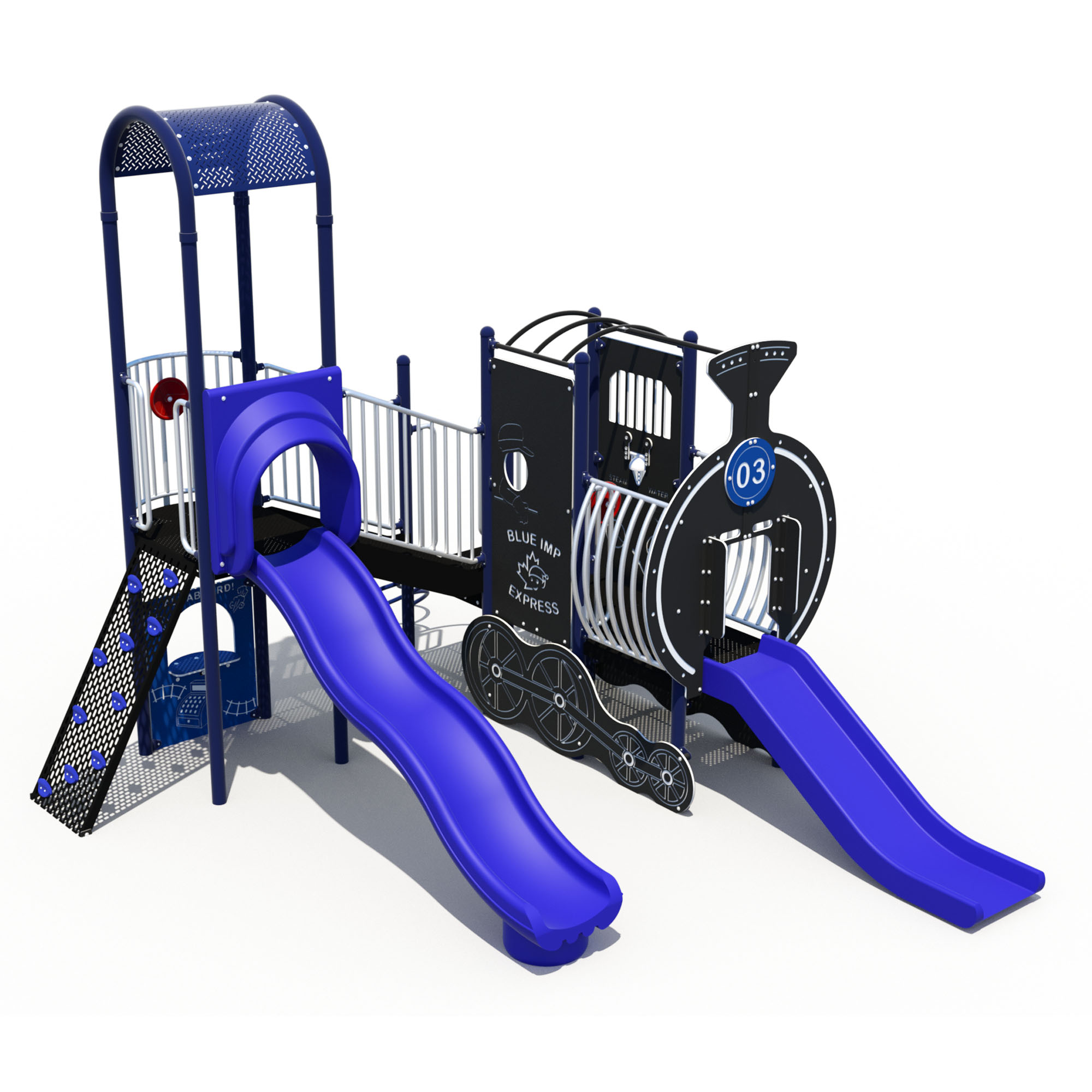 Everyone loves a train, which makes the Whistle Stop train-themed playground perfect for imaginative and active play. Young conductors can explore, climb, and slide through a world of locomotive-inspired fun. Transfer station provides easy access for diverse abilities.