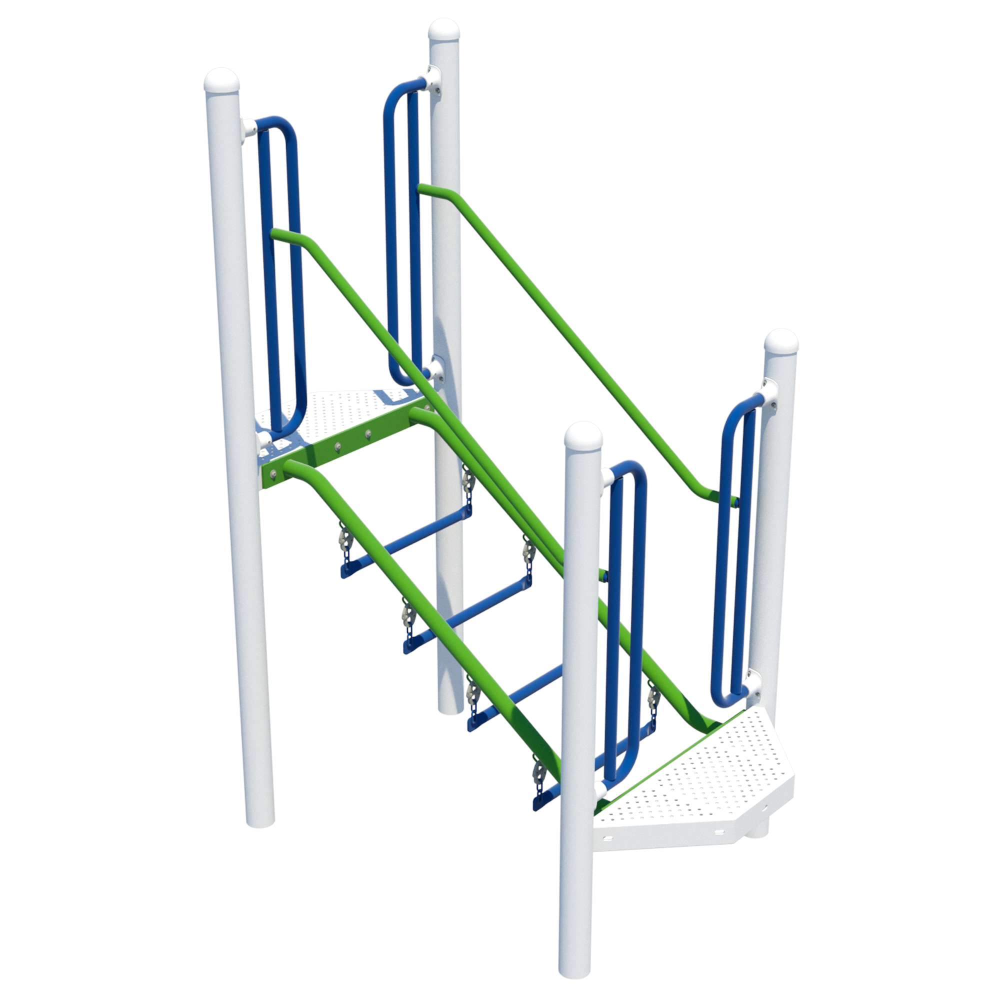 Kids love the challenge and perceived risk of the “wiggle factor” created by the Wiggle Link playground component. A creative way to link a lower deck to a higher deck.