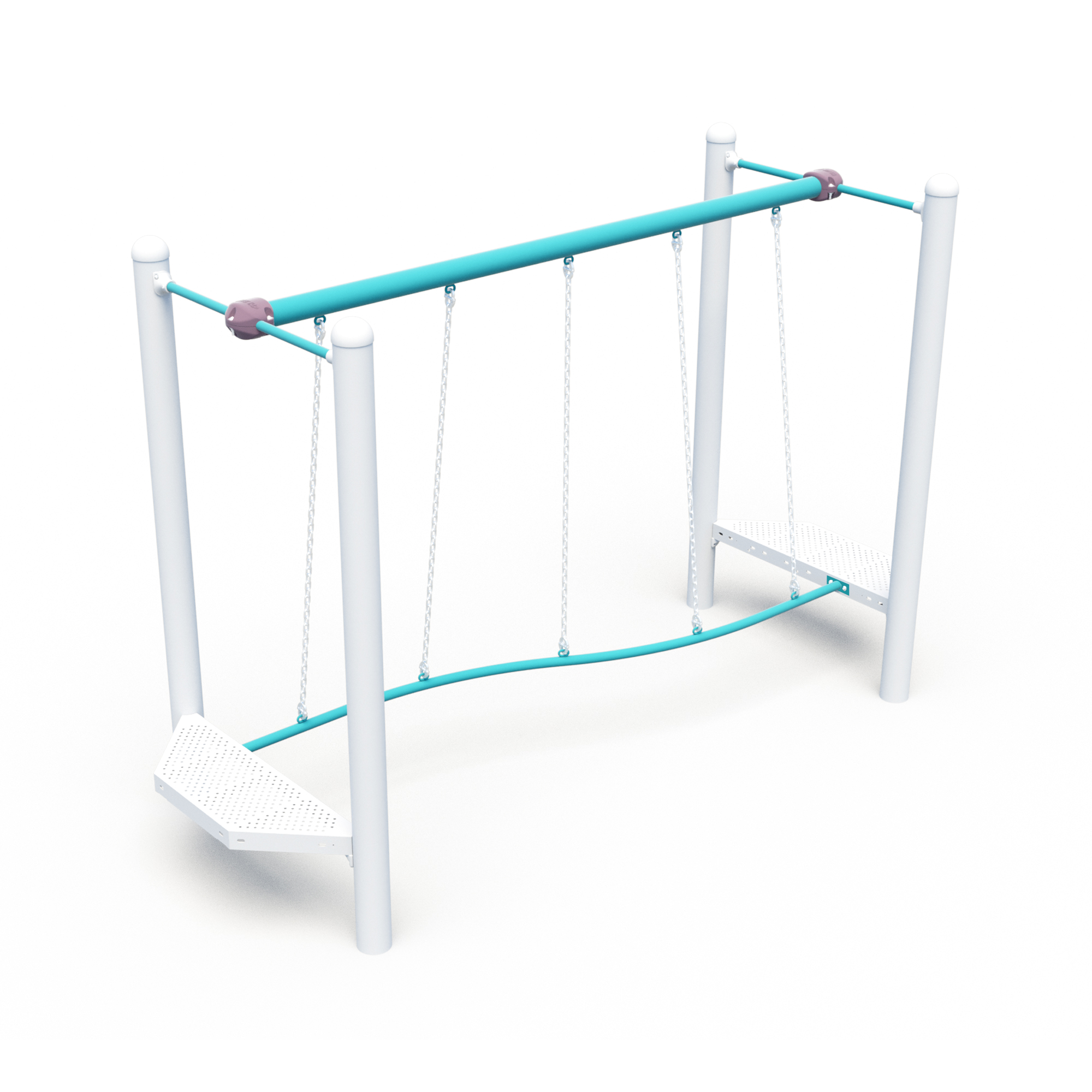 The Wonky Wave links two platforms with a curvy bottom rail and angled chains that create a fun, off-balance crossing challenge designed to test balance, coordination and focus.