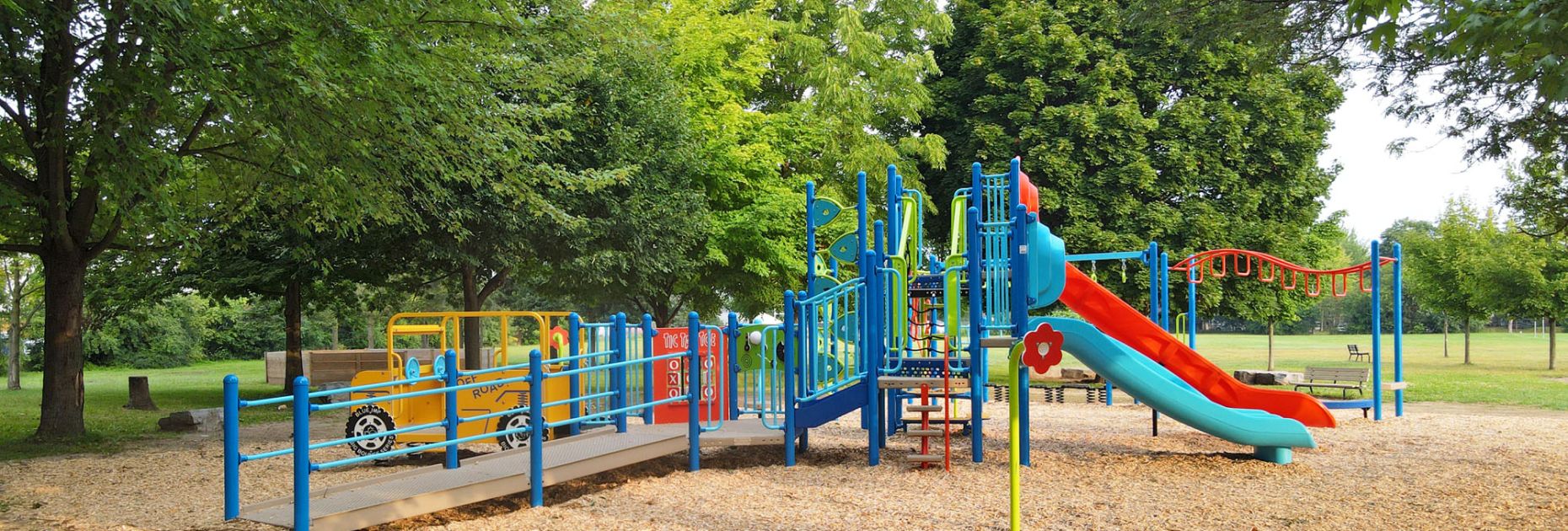 This school wanted to replace their massive 25-year-old play structure. It was vital to the school community that we craft a design offering the same play value while incorporating accessibility and inclusion for their new playground design. To achieve these objectives, we designed a ramped structure with an accessible Bouncing Buddy Bus plus dual slides and high climbers. We also included a challenging obstacle course for the older students as well as diverse ground-level activities. The end result is a vibrant, action-packed design that met the goals of the school community and will entertain a broad range of abilites, skill levels and ages.