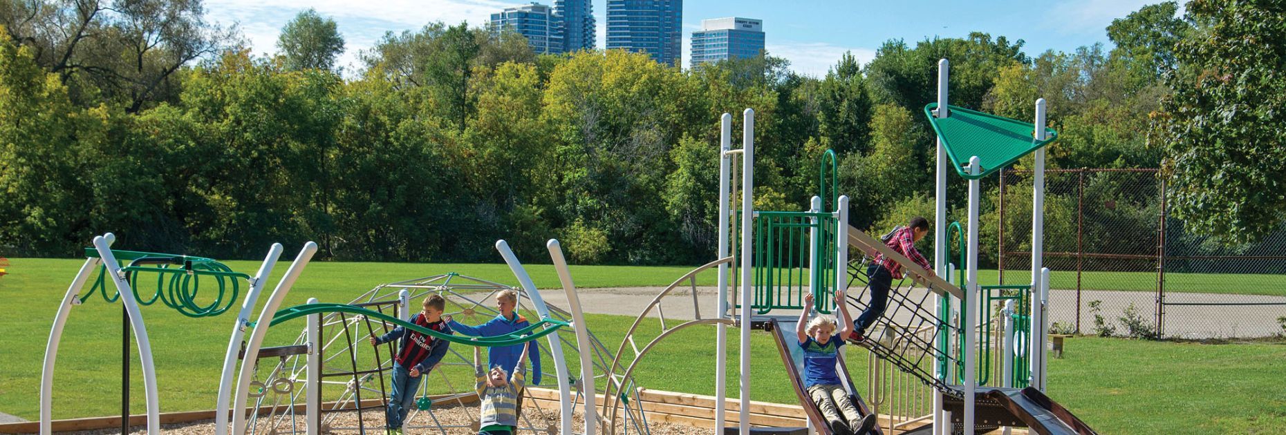 A unique multi-functional playground for all ages. This school wanted their playground to include climbing, agility, skill building and core development in its design. We worked hard to cover all the bases, from the challenging climbers and net-based components to overheads from our u-Play series and of course the super-speedy stainless steel slide. The Satellite and Lunar Scooter spinners provide the dizzying thrills kids love, while a large bank of classic swings ensures no one misses out on the thrill of swinging! Our Igloo Climber rounds out the play and helps spread out the action.