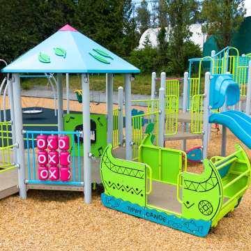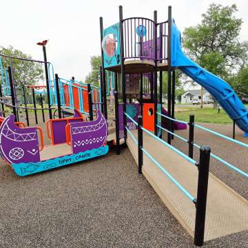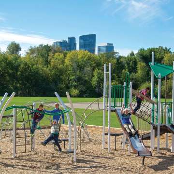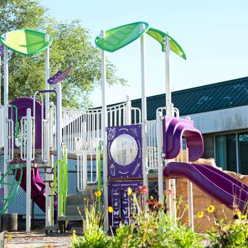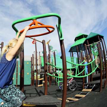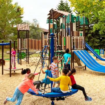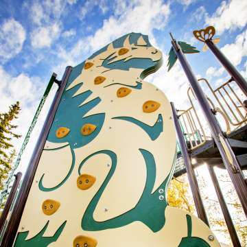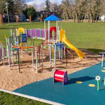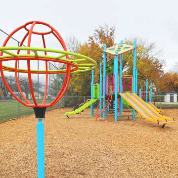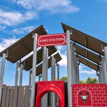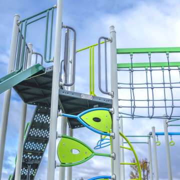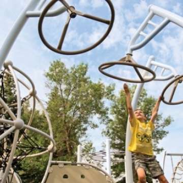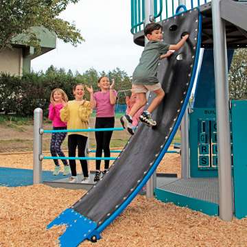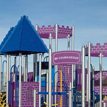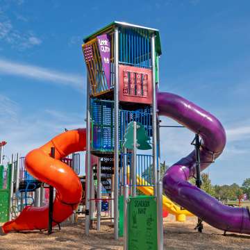 Who says a small town can’t dream big? The small community of Milo, the big dream was a to build a large, space-themed playground designed to delight all ages. The Blue Imp design team rose to the challenge. This custom design features oodles of play value with space and science touches throughout